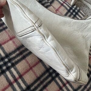Has some scuff marks and one little hole on the bottom from use - but they do not show at all and make no difference to the use or the look of the bag