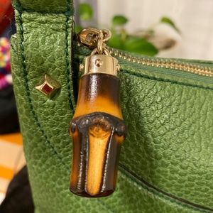 Gucci bamboo top handle shoulder bag in emerald green