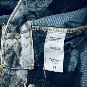 Beautifully well-made Guess brand jeans, dark wash, beautiful embroidery, and studs on pockets. New no tags.