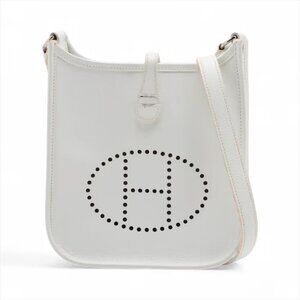 Authentic HERMES Evelyn TPM Mini Clemence Epsom Leather White Shoulder Bag Tote