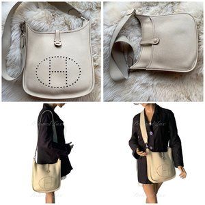 Authentic HERMES Ivory Beige Clemence Evelyne II PM Crossbody Bag