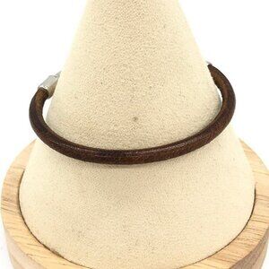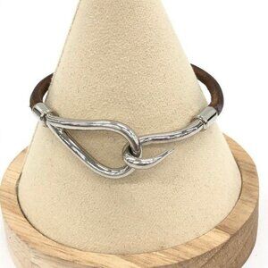 Authentic HERMES Jumbo Hook Bracelet Stainless Steel Leather Silver Brown