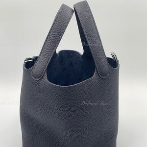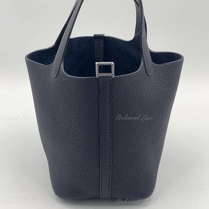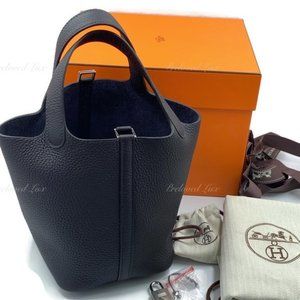 Authentic HERMES Picotin Lock 18 Caban (dark blue) Clemence Leather Palladium