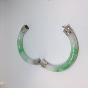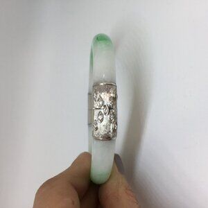 Authentic Jadeite Hinged Bangle Bracelet wtih 14K White Gold and Diamonds