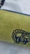 Chic wristlet with lime suede and navy accents. Features chain strap and logo detail. Ideal for a stylish touch.
