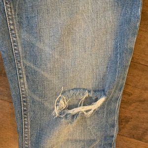 Ripped and threadbare, The Penelope come in a light indigo wash with distressing at the knee. These jeans are cut from premium stretch denim in a flattering slim, straight-leg silhouette. GUC with some general wear. Please note that the stock photo is of a very similar pair of jeans to show fit only.