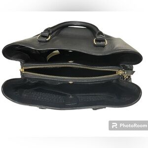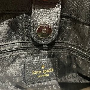 •Satchel with magnetic snap closure, interior zipper and double side pockets. Center dividing zipper compartment. Gold foil embossed Kate spade New York signature
