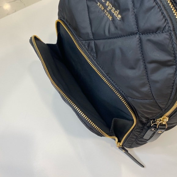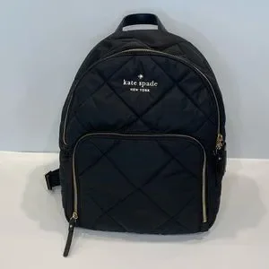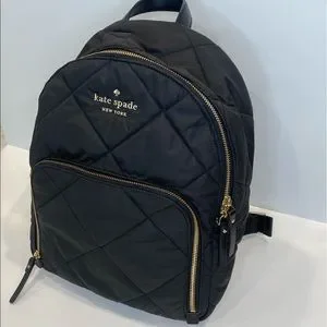 Beautiful Kate spade Backpack, very lightly used. Polyester shell material, top handle real leather. Perfect for on the go, can be used as a purse, daypack, over night bag. Contains front pocket and inside pocket. Zipper & grommet detailing in excellent condition.