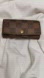 Hardware gold and is faded. Peeling under the slip pockets. Threading and uneven color and scratches. This is a well used piece. Beautiful still and will last a lifetime . Please see all photos for flaws. Peeling under the insert.