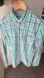 Crisp and classic Lacoste long sleeve in a green and blue gingham check pattern. Regular fit, size 39 (fits like a men’s Small or slim Medium). Designed in France, made in China.