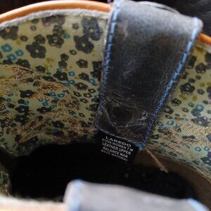 The Laredo® Sapphrye is a true gem of Western style! Distressed and lightly scoured leather upper. Features intricate Western stitching on shaft. Pull tabs at top of shaft. Printed fabric lining for a comfortable fit. Round toe. Scoured heel. Composite sole for added grip and durability. Imported. Measurements: Heel Height: 2 in