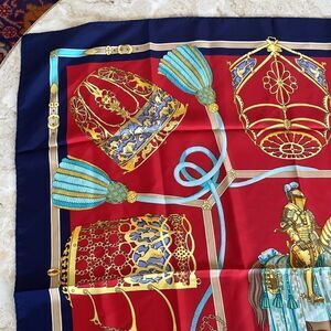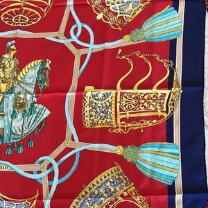 In excellent preowned condition vintage Hermès large 100% silk scarf.