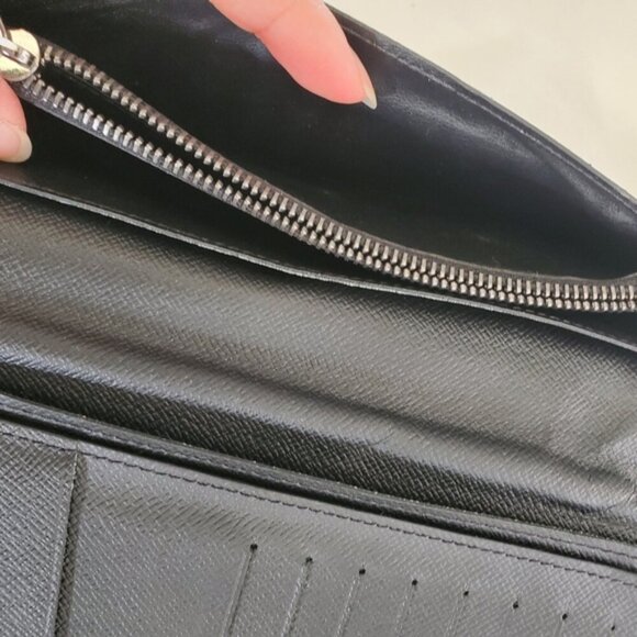 Own a piece of iconic luxury with this authentic Louis Vuitton Brazza Wallet in the sleek and modern Monogram Eclipse canvas. This classic long continental wallet is renowned for its spacious and highly organized interior, featuring numerous card slots, compartments for bills, and a secure zippered coin pocket. A sophisticated and practical accessory crafted with Louis Vuitton's legendary quality.