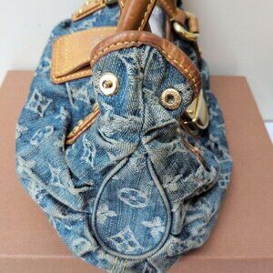 Authentic Louis Vuitton Denim Pleaty Monogram Vintage Pouch Pochette Hand Bag