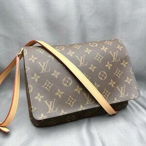 Authentic Louis Vuitton Monogram Musette Tango Crossbody Shoulder Bag Brown Tan