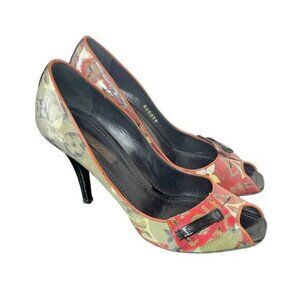 Authentic Louis Vuitton Multicolor Monogram PVC Coated Heels Peep Toe Pumps 7.5