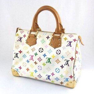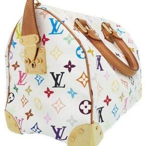 Authentic Louis Vuitton Multicolor Speedy 30 Monogram Sac Hand Bag White Gold