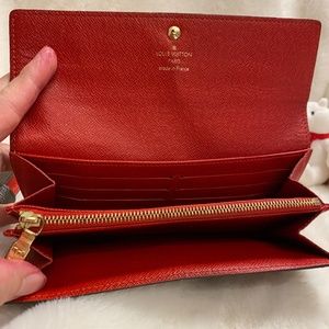 Authentic Louis Vuitton Sarah long wallet with poppy interior