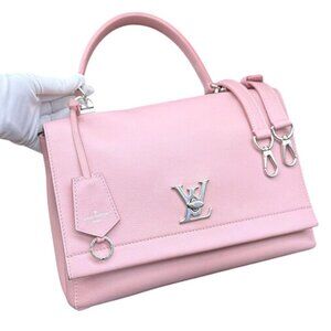 Authentic Louis Vuitton Soft Calfskin Lockme Top Handle Rose Ballerine Pink Bag