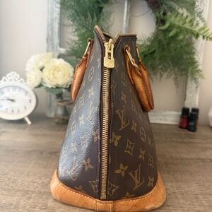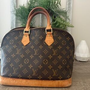 Condition: Canvas still vibrant. No crack, no rip. Clean inside. Some water marks on the bottom. Beautiful honey patina. Some minor scratches on the vachetta. Tarnished hardware.