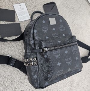 Stylish MCM backpack with iconic logo design. Durable straps and roomy interior. Perfect for everyday use.