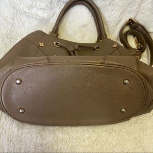Authentic vintage MCM 2 way bag .With removable adjustable strap. Can be a hand bag or cross body. Minimal signs of usage. Rubs on corners. Some tarnish on hardwares. Tan/brown in color. Leather material