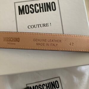 Calfskin fabric. Metal logo buckle. Ajustable pin buckle clasp.