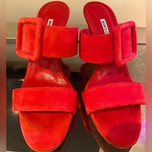 Light beige open toe mules featuring two front broad straps with an oversized decorative buckle trim and stiletto mid heel.
