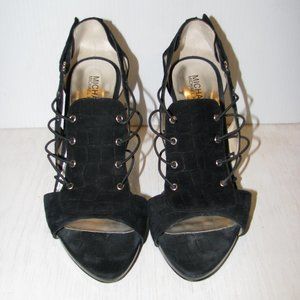 Authentic Michael Kors High Heels Jillian Open Toe Black Suede Shoes (Size 9)
