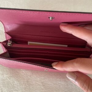 Brand new and never used authentic Michael Kors Jet Set Large Continental Wallet in a muted fuchsia pink colour. Snap front.