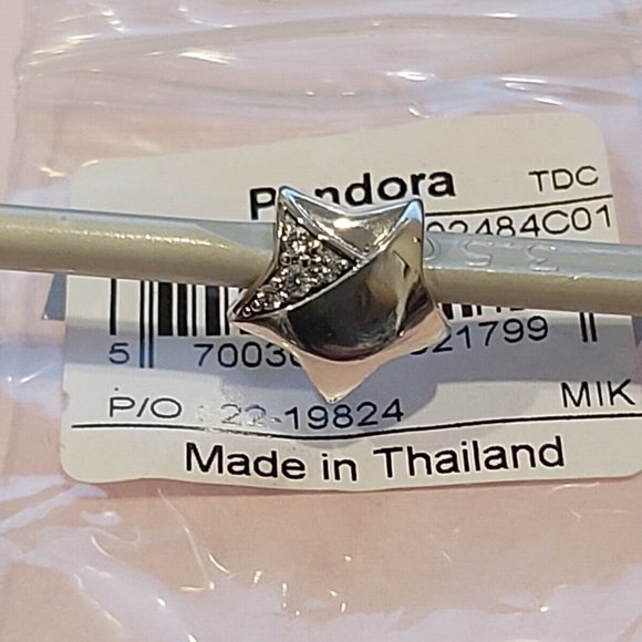 Collection: Pandora Moments Collection Metal: 925 Silver Artificial Gemstones: About 4 Beads Set Round Brilliant Cut Transparent Synthetic Cubic Zirconia Style: Origami Star Charm with Sparkling Details Stacked of paper; front corner inlaid with synthetic cubic zirconia of varying sizes and reverse with star engraving. Inspiration: The tradition of origami stars, also known as wishing stars. It is made of folded paper strips, symbolizing luck and sincere blessings.