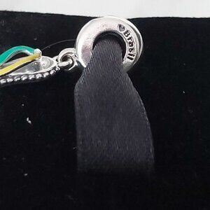 Get your samba on with the Flip-flop DangleCharm inspired by Brazil’s famed beach culture. The iconic summer footwear is brought to life with straps hand-painted in yellow and green enamel and a chevron pattern on the sole. A microbead border decorates the edges of the flip-flop, and the bail is engraved with the message: "❤ Brasil." Wear this charm to a beach party and be transported to a fun-filled day in the Brazilian sun