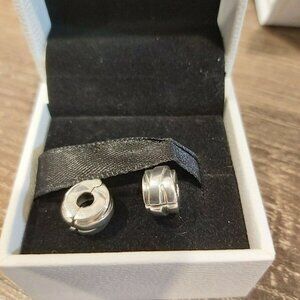 Authentic PANDORA Sterling Silver Polished Ribbons Clips Charm set 799502C00