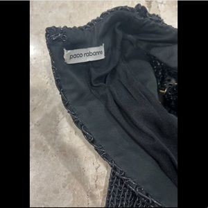 Black fully wired embroidered Paco Rabanne dress with gold chain details. Size 36