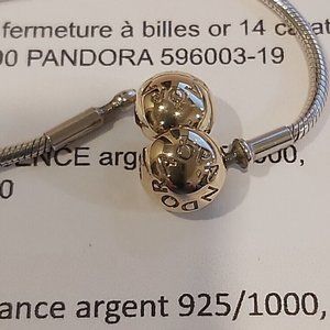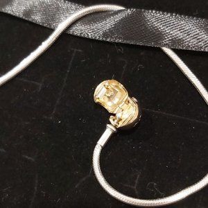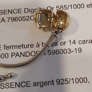 Authentic PANDORA*RETIRED* Essence Sterling Silver with 14k Gold Clasp Bracelet 596003-19 (7.5 inches 19 cm)