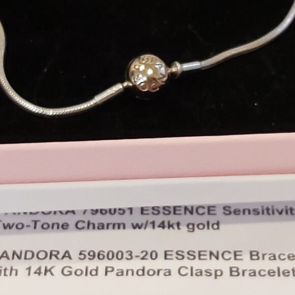 Authentic PANDORA*RETIRED* Essence Sterling Silver with 14k Gold Clasp Bracelet 596003-20 (7.9 inches 20 cm)