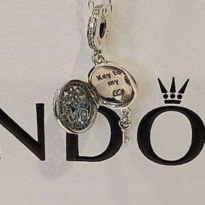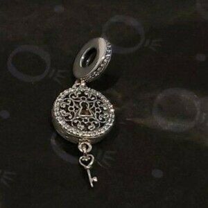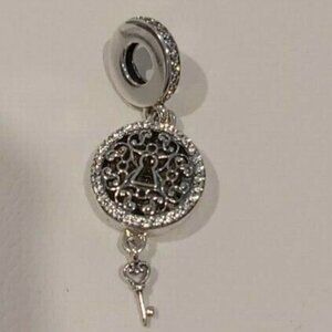 Authentic Pandora *Retired and Rare* Sterling silver Regal Love Key Dangle Openable Charm with Clear Zirconia and Engraving - 797660CZ