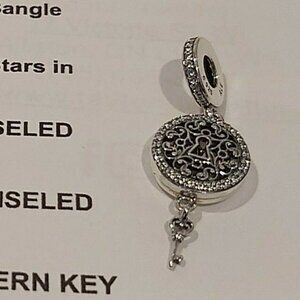 Authentic Pandora Sterling Silver *RETIRED* Regal Key Dangle Charm 797660CZ