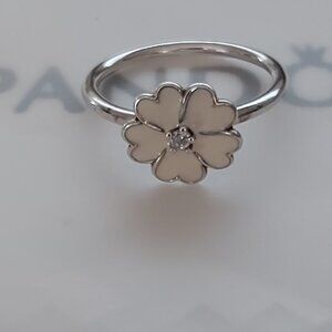 Authentic Pandora Sterling silver Primrose CZ Enamel Ring size (7) 54 190931EN12