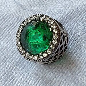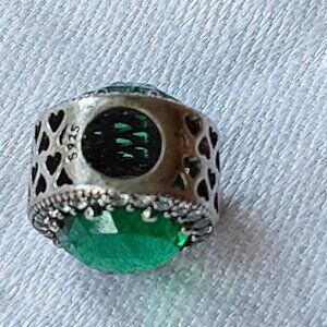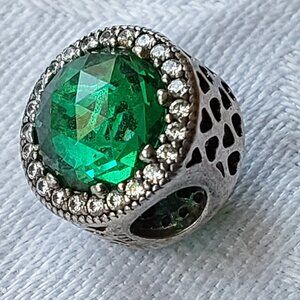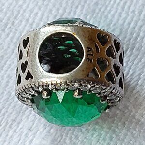 Authentic Pandora sterling charm radiant hearts green crystals S925