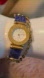 Elegant women's watch featuring a striking gold case and a stylish blue strap. Perfect for adding a touch of luxury to any outfit.