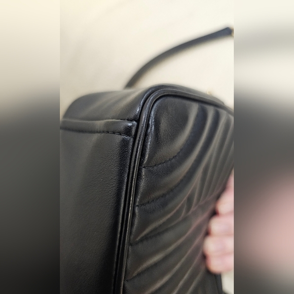 Careworn. The exterior corners are excellent. The strap is in excellent condition; no cracks. Hardware in some spots is worn, showing slight discoloration. The interior is very clean; absolutely no smell. The authentic white tag inside #260. It comes with a dust bag, authenticity card. The original receipt will be provided upon request.