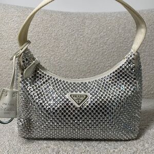 Authentic Prada Re-Edition Satin mini-bag with crystals