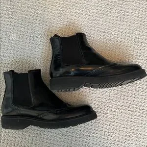 Beautiful Prada boots. A vintage style of Prada patent leather Oxford Chelsea boots with brogue detailing Hardly worn, great condition. Size 39 - fit like 8.5 -9