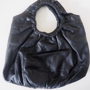 Stylish and comfortable, authentic, soft black leather bag by the luxury Italian brand Francesco Biasia. Durable beige lining. High quality, beautiful and practical large size, in excellent condition with only minor signs of wear.