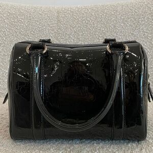 Authentic Pre-owned Dior Black Monogram Patent Leather Boston Bag