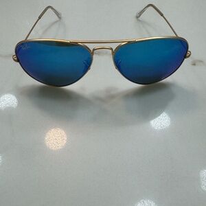 Almost brand new, Blue metallic lens, gold frames, Rayban Sunglasses in original case. They were originally over $150.00. In Excellent condition.