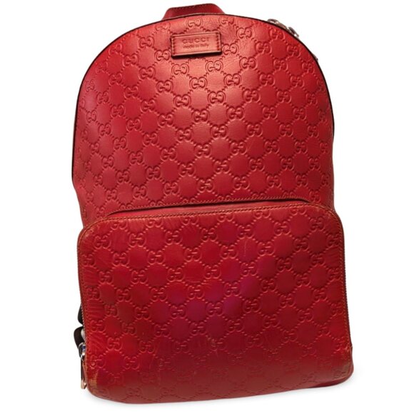 Authentic Red GUCCI Embossed Leather Backpack, Rare Red