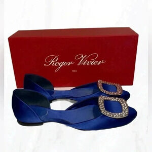 Roger Vivier Dark Blue Saint Flat, Size 35.5