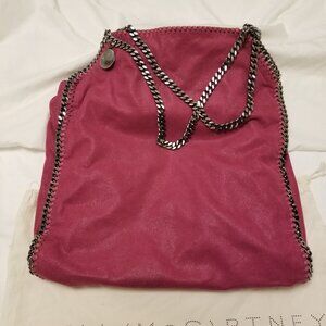 This is a Stella Mcartney Falabella tote bag, made from faux leather with a diamond cut chain trim.